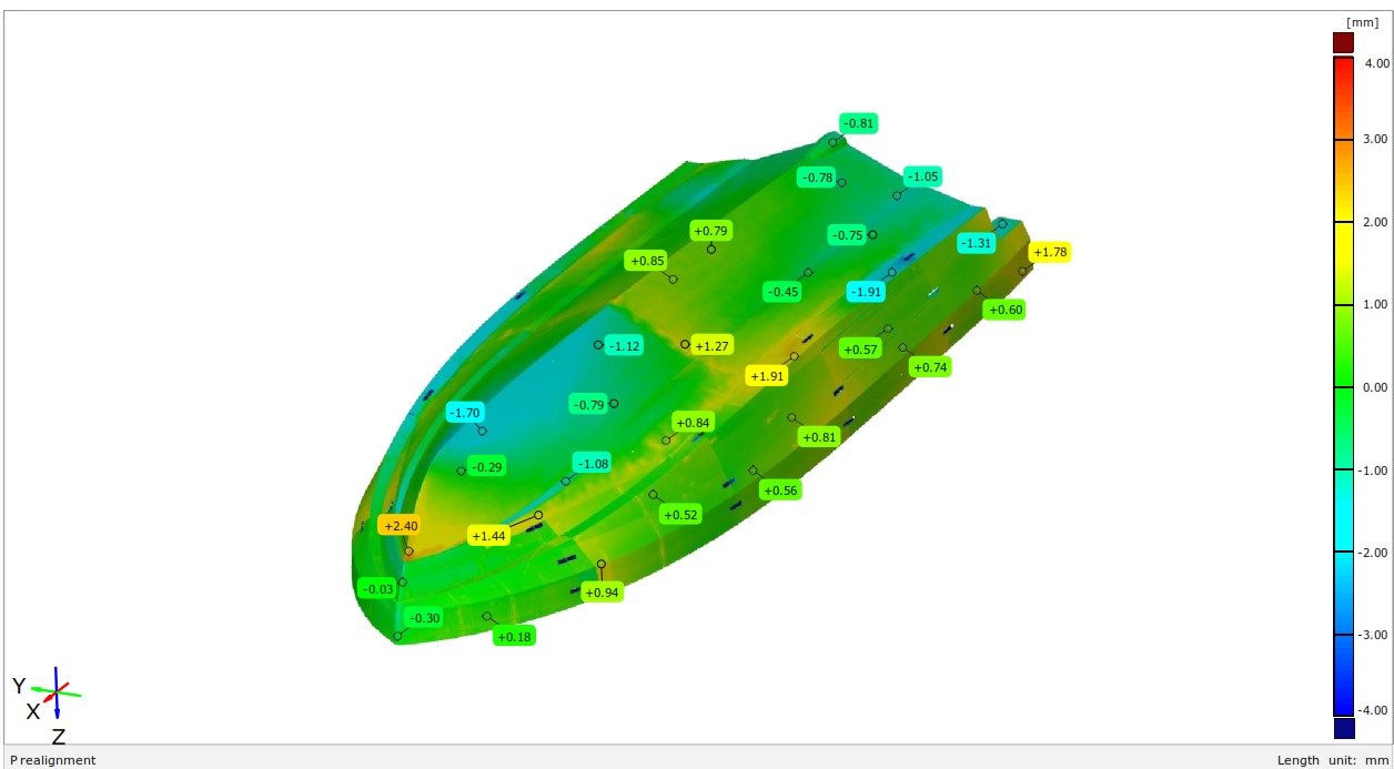 Tarama datası, CAD model ile üst üste getirilerek sapmalar belirlenir